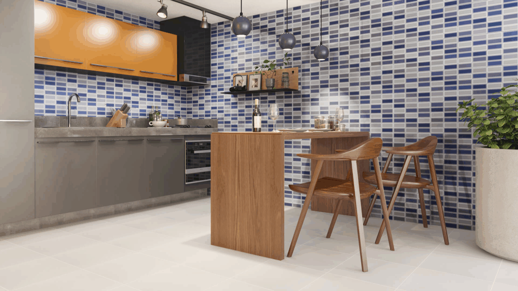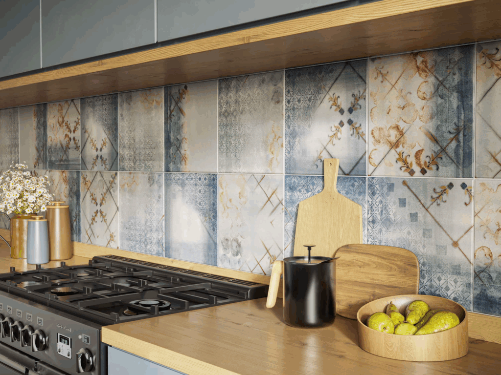 | Handmade / Artesanal | Azul profundo, off-white, verde musgo | Bordas irregulares, esmaltação manual | Cozinhas vintage, áreas gourmet, paredes de hall de entrada |