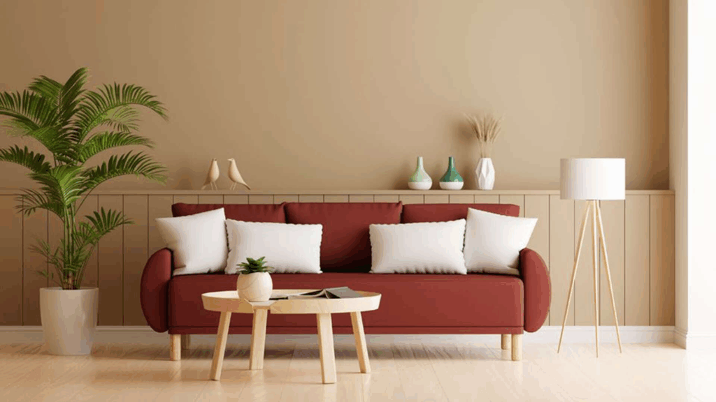 A tendência em 2026 é explorar combinações equilibradas entre cores neutras e acentos vibrantes. Por exemplo: paredes em tons de areia podem ser realçadas com objetos em azul petróleo; ou uma base off-white pode receber vida com almofadas em verde sálvia.