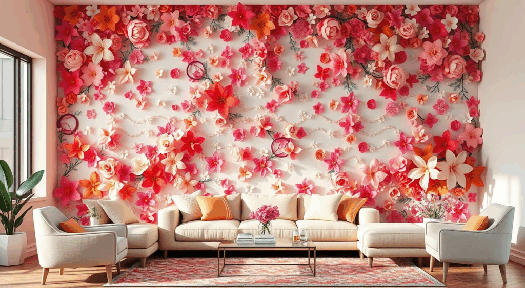 Outra opção são os papéis de parede, formas geométricas e desenhos abstratos são uma das principais tendências entre os papéis de parede para quartos de casal. Listras e estampas florais também vem fazendo sucesso.