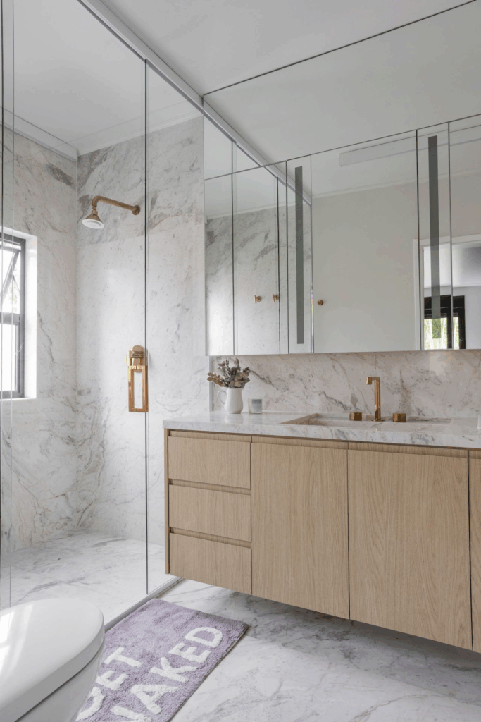 O mármore é sempre uma excelente opção para decorar o banheiro e ele sempre vai estar na moda.