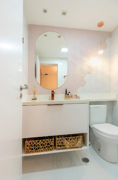 Um banheiro bem mobiliado transmite sensação de limpeza, conforto e cuidado com os detalhes.