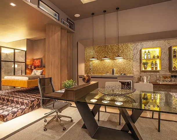 O dourado é uma tendência que tem ganhado cada vez mais destaque nos últimos anos, quando se trata de decoração para sala de estar, além de ser uma cor elegante para compor um ambiente. Ele pode ser usado de várias maneiras. Você já conhecia essa riqueza de detalhe? Deixe nos comentários sua opinião.